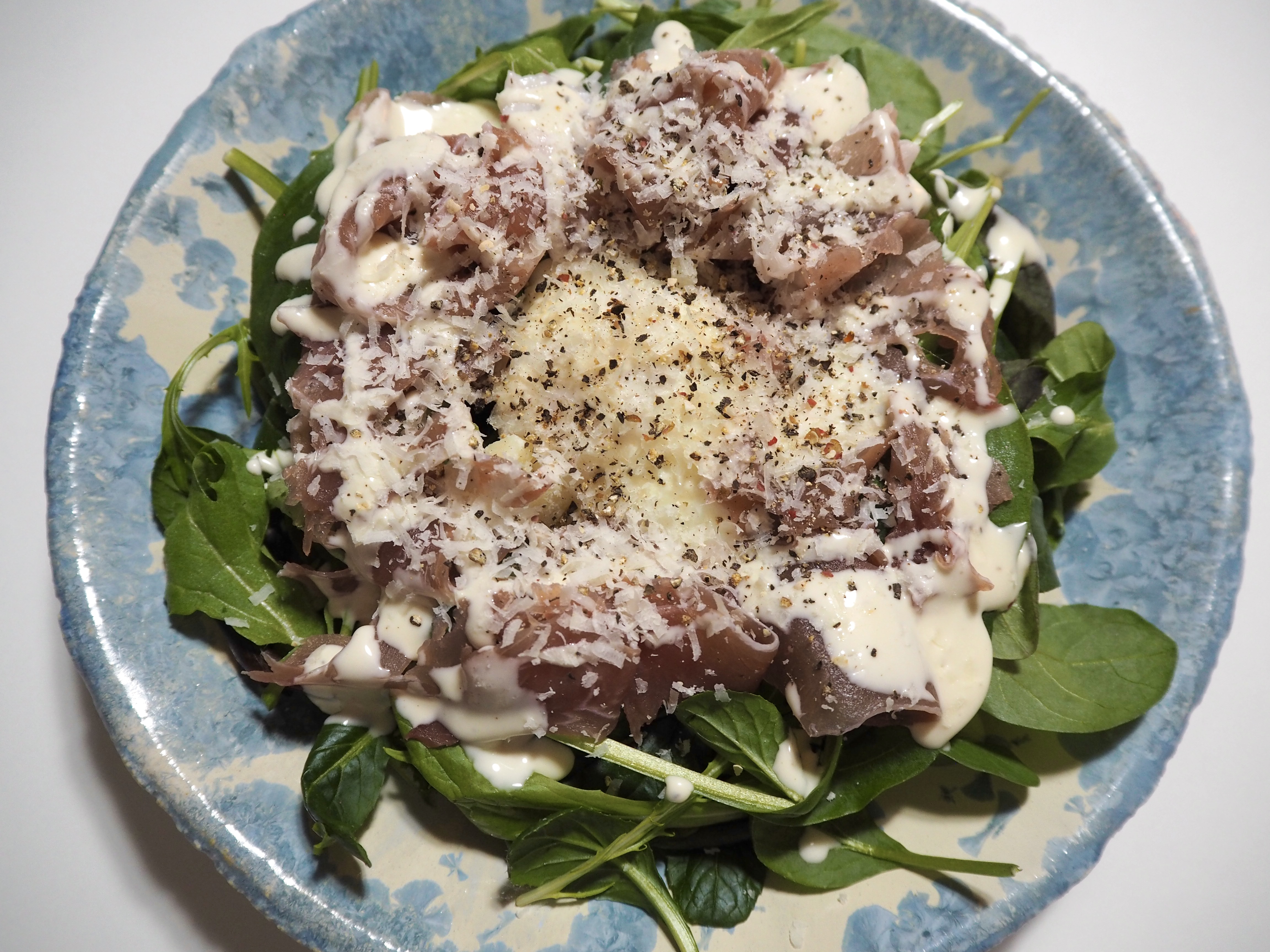 ベビーリーフと半熟卵と生ハムのサラダ