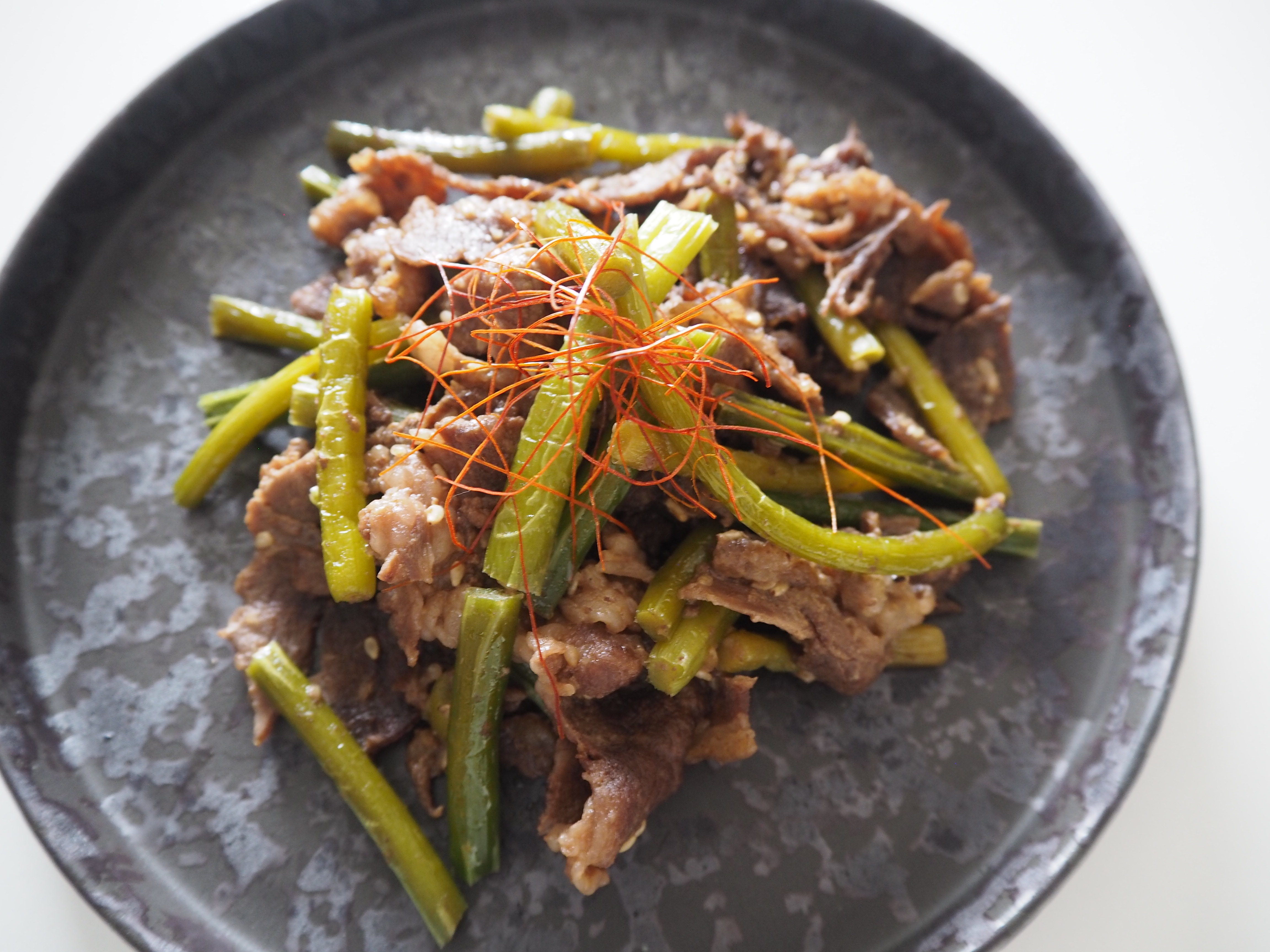 牛肉とにんにくの芽のオイスターソース炒め